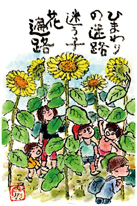 個展 戯画個展 銀座で5回、引退後1日1句1画の句画を描き、毎年末東京で個展開催。 |