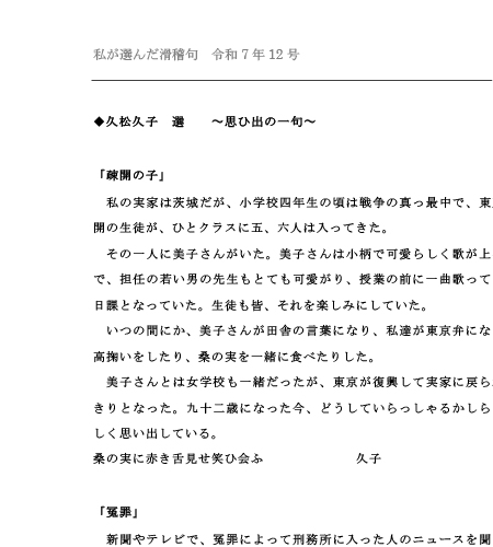 「私が選んだ滑稽句」 令和7年12月号
