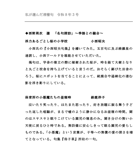 「私が選んだ滑稽句」 令和8年3月号