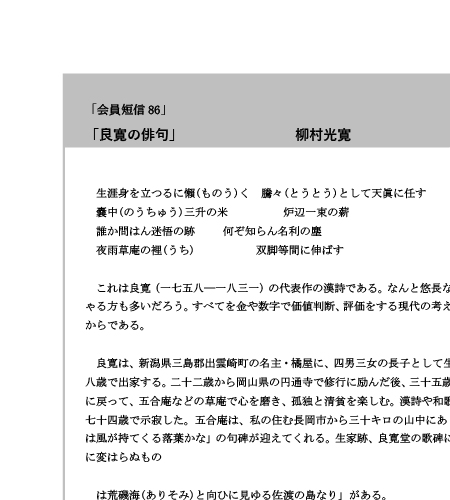 「会員短信86」 「良寛の俳句」 柳村光寛
